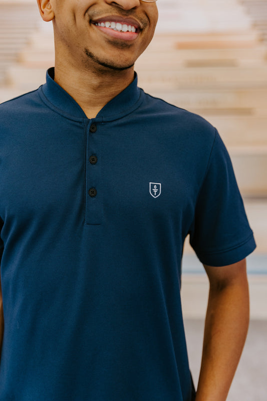 M + M Henley Navy Polo